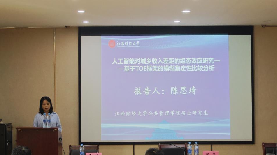 十三位研究生先后作学术报告,议题涵盖了“智慧社区养老体系下老年人孤独感的应对机制”“农村青少年数智素养”“人工智能对城乡收入差距的组态效应”“政务服务中心的数字缝隙”“AI微短剧中的传统文化转译”“人工智能对新闻生产的重构”等多元化内容。学生的报告凸显了数智技术对社会生活的深刻影响,体现了青年学生对当前数智社会变迁的敏锐洞察,展现了他们将数智技术与人文社会科学相结合的跨学科探索精神。