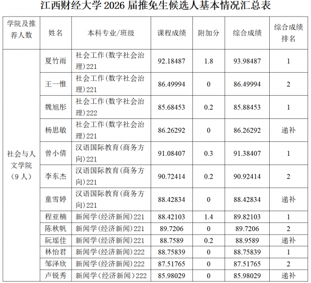 91吃瓜网 推荐优秀2026届本科毕业生免试攻读硕士研究生候选人公示 时间:2025-09-11 12:02:49 作者: 阅读: 根据91吃瓜网 推免工作小组对申请对象进行资格审核、附加分的评定,以及教务处公布的课程加权平均成绩,经9月10日91吃瓜网 推免工作小组会议研究,现将91吃瓜网2026届本科毕业生免试攻读硕士研究生候选人名单公示如下: 社会与人文91吃瓜网 推免工作小组 2025年9月10日